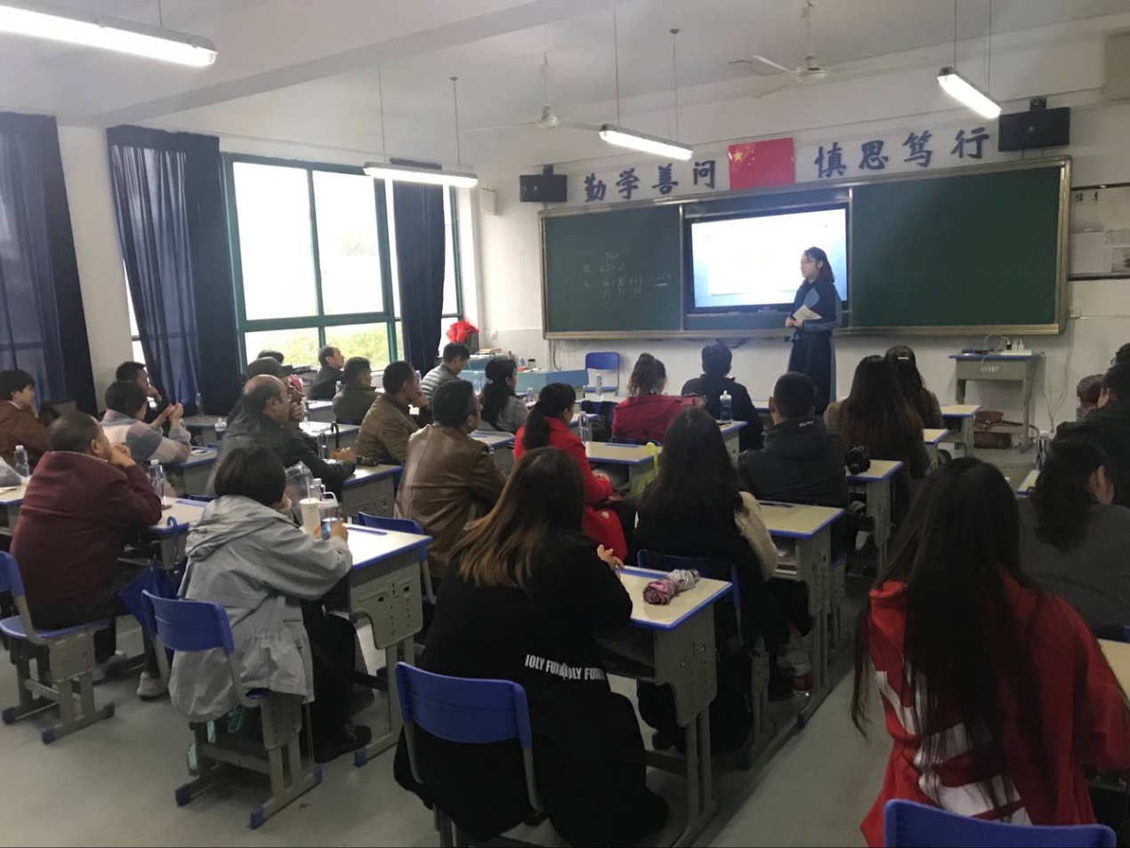 在高三这样一个关键年,作为高三年级一线任课教师的张虹和蔡欢主任,主要向家长讲解了技能高考的政策,我们备考的目标、实施计划和方法,分析了近期学生的学习情况和在学习中出现的各种问题,重点给家长提出几点建议,希望家长能给孩子营造良好的学习环境,注意孩子的学习和生活,激励孩子的上进心和进取心,尤为重要的是要配合学校,形成家校合作,共同促进学生在最后关键阶段的进步,增强学生正确面对高考,挑战自我的能力。家长要及时与班主任和任课老师进行沟通交流,合力营造一个紧张有序、积极健康、自信努力的备考氛围。最后,家长之间也与班主任和任课老师们进行互动交流,主要针对学生的情况进行详细的了解,备考前有什么样的注意事项等问题。